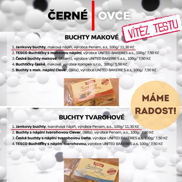 Černé ovce testovaly buchty a mezi nimi i naše Jankovy buchty s makovou a tvarohovou náplní. Jak test dopadl? Vyhráli jsme a máme velikou radost!