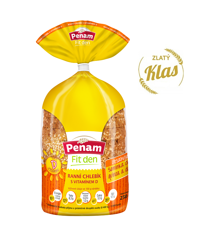 Penam v této soutěži zabodoval s výrobkem Ranní chlebík s vitamínem D, který vyrábíme v Pardubicích. Porota složená z odborníků ocenila jeho výtečnou chuť, unikátní technologii pasterizace a zaujalo je i složení – červená quinoa, chia, dýňová semínka a především vitamín D, který běžně v pečivu nenajdete.
