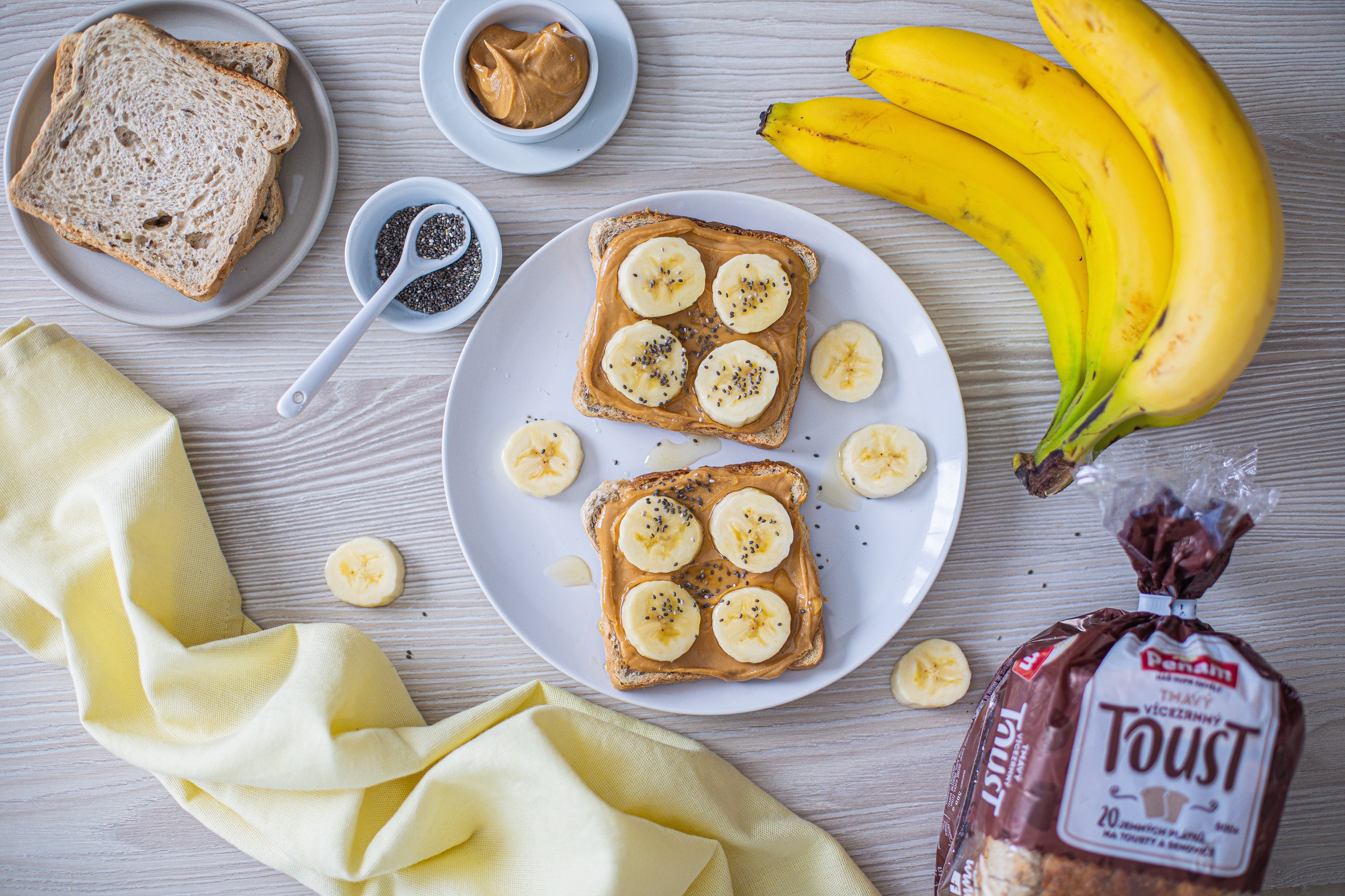 Banánový toust je dobrota, do které se s chutí zakousnete ráno na snídani, ale i během dne na svačinu. Hotové jsou navíc během pár minut. Tousty opečte. Namažte burákovým máslem, vyskládáte na ně kolečka nakrájeného banánu a posypejte chia semínka. Pokapejte čekankovým sirupem a podávejte.
