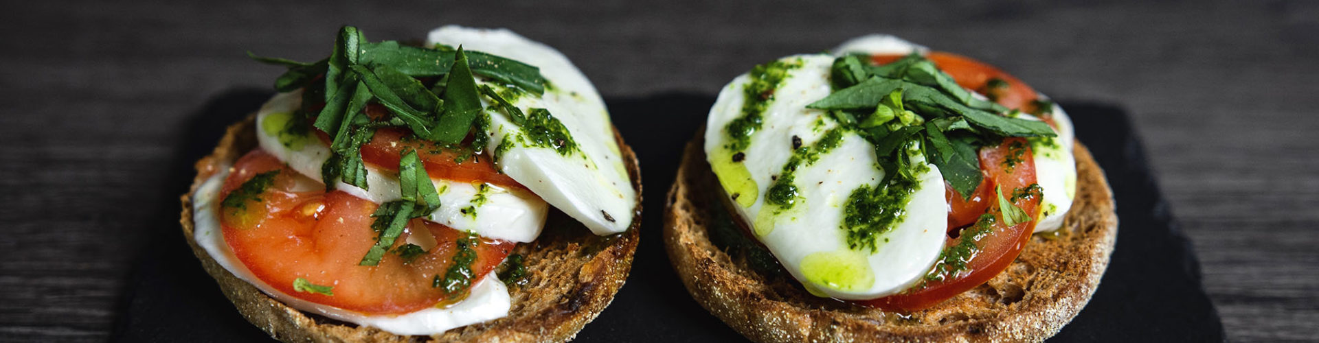 Toustís rozkrojíme nožem na 2 půlky. Každou opečeme nasucho na rozpálené pánvi z obou stran. Mozzarellu nakrájíme na 6 plátků, a začneme skládat. Obě půlky Toustís namažeme bazalkovým pestem. Na jednu půlku dáme plátky rajčete, mozzarelly a ozdobíme rukolou. Stejný postup použijeme i na druhou půlkou Toustís a podáváme.