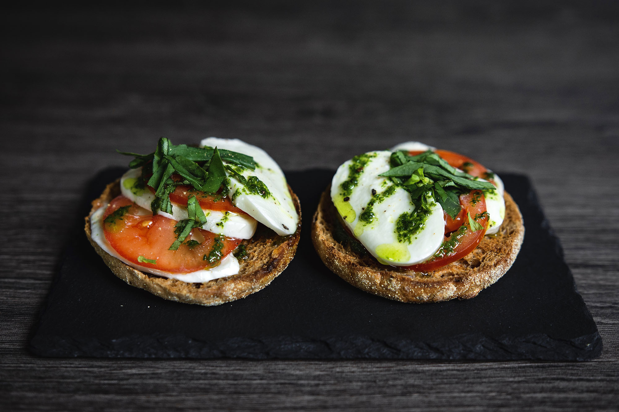 Toustís rozkrojíme nožem na 2 půlky. Každou opečeme nasucho na rozpálené pánvi z obou stran. Mozzarellu nakrájíme na 6 plátků, a začneme skládat. Obě půlky Toustís namažeme bazalkovým pestem. Na jednu půlku dáme plátky rajčete, mozzarelly a ozdobíme rukolou. Stejný postup použijeme i na druhou půlkou Toustís a podáváme.