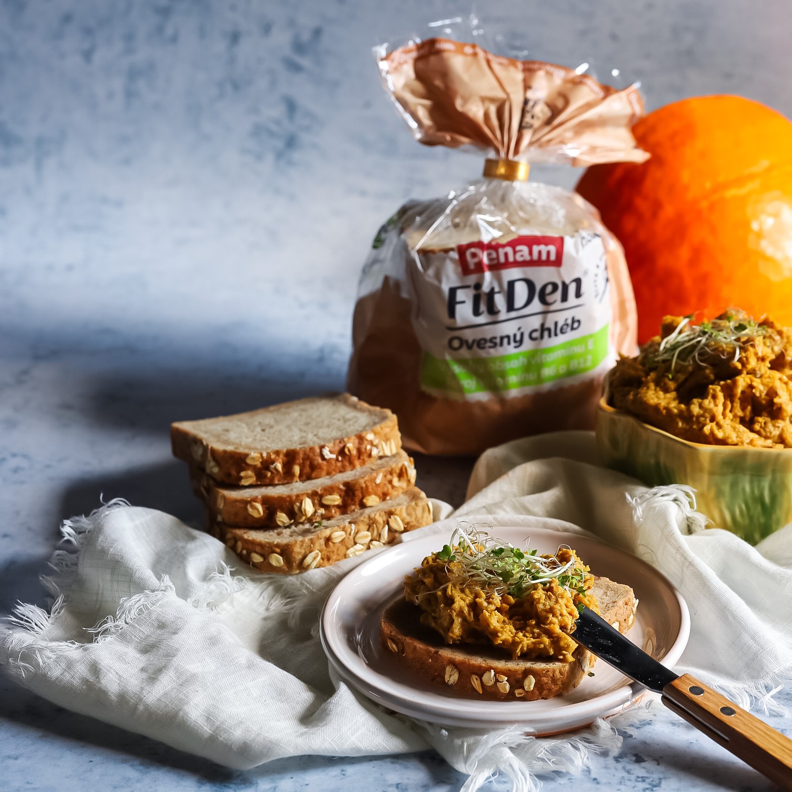 Ovesný chléb s dýňovou pomazánkou