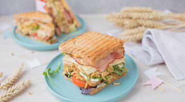 Všechny krajíce potřete čerstvým sýrem a připravte po dvou na 2 sendviče.