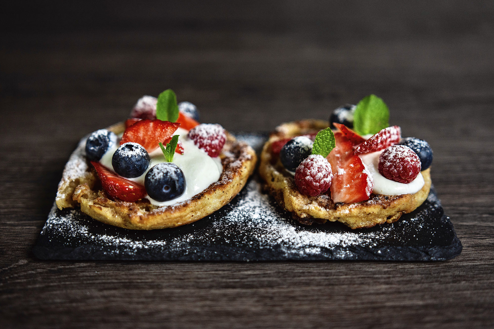 V malé misce rozšleháme vejce, přidáme mléko, cukr a skořici. Toustís podélně rozkrojíme a namočíme v mléce. Na rozpálené pánvi rozpustíme máslo a vložíme namočené Toustís, pečeme z obou stran. Opečené Toustís vyndáme a lehce osušíme na ubrousku. Navrch Toustís přidáme zakysanou smetanu, pak zdobíme jahodami, borůvkami a malinami. Na závěr posypeme cukrem.