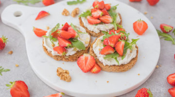 Žervé smícháme v misce se šťávou, třešněmi, nasekanými ořechy a vanilkou, můžeme popřípadě i dosladit. Namažeme na špaldový chlebík, ozdobíme nasekanými vlašáky a lístky meduňky.
