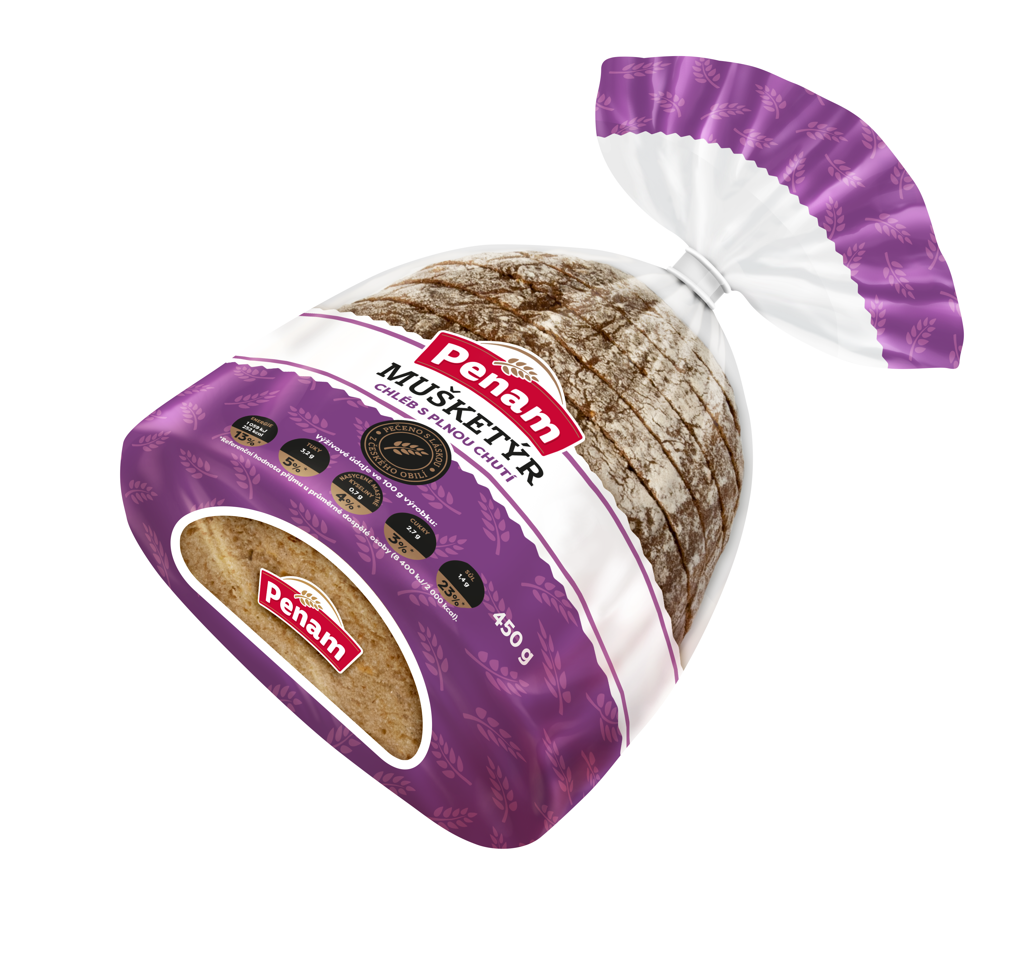Chléb Mušketýr je pšenično-žitný chléb se záparou a poctivou dávkou slunečnicových a lněných semínek a pšeničných klíčků.