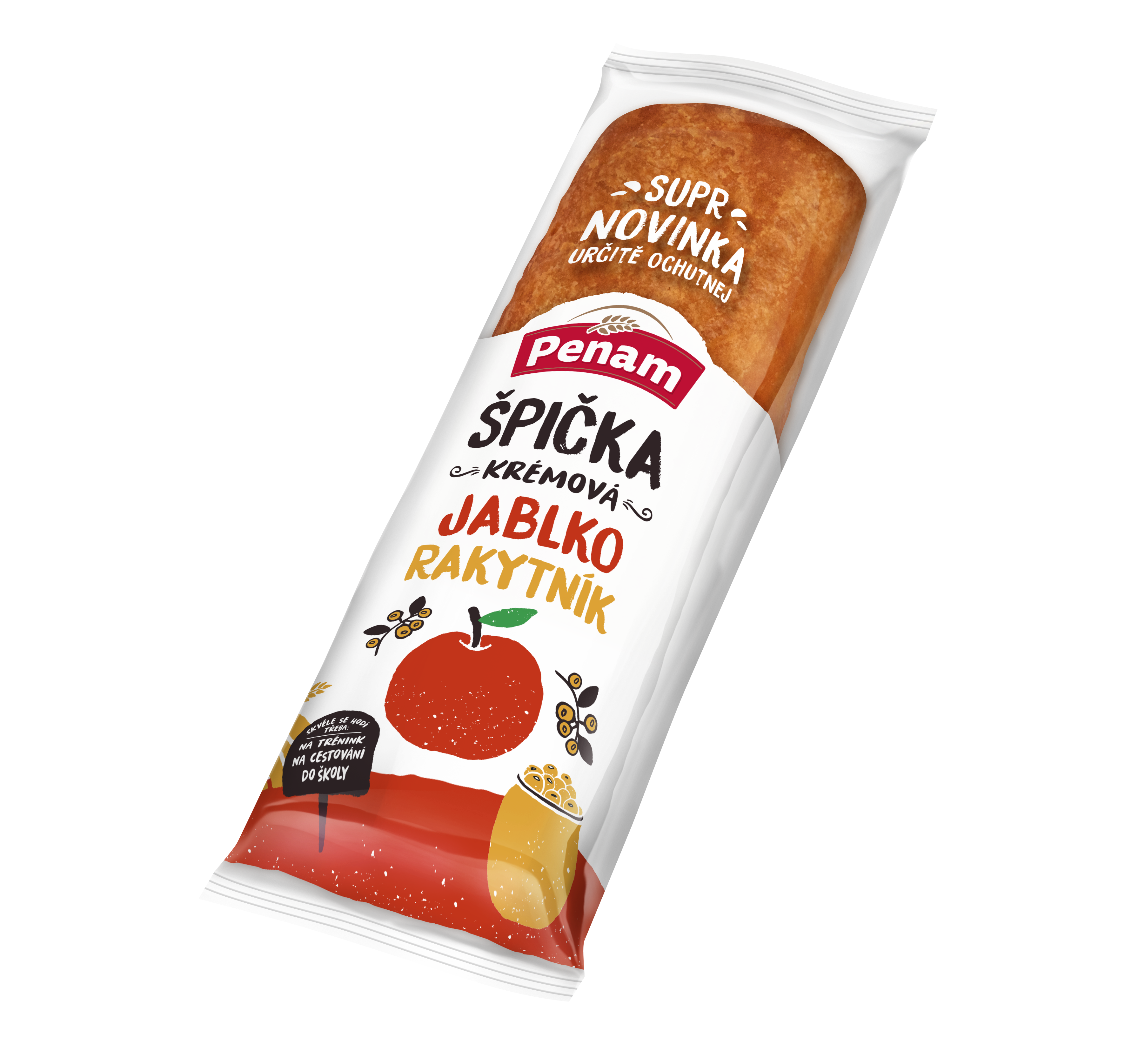 Plundrová špička od Penamu je neodolatelné sladké pečivo z jemného, vrstveného plundrového těsta, které je vláčné a lehce křupavé. Uvnitř se skrývá lahodná kombinace dvou náplní – sametově krémové a ovocné jablečno-rakytníkové, která spojuje sladkost jablek s osvěžující kyselostí rakytníku.