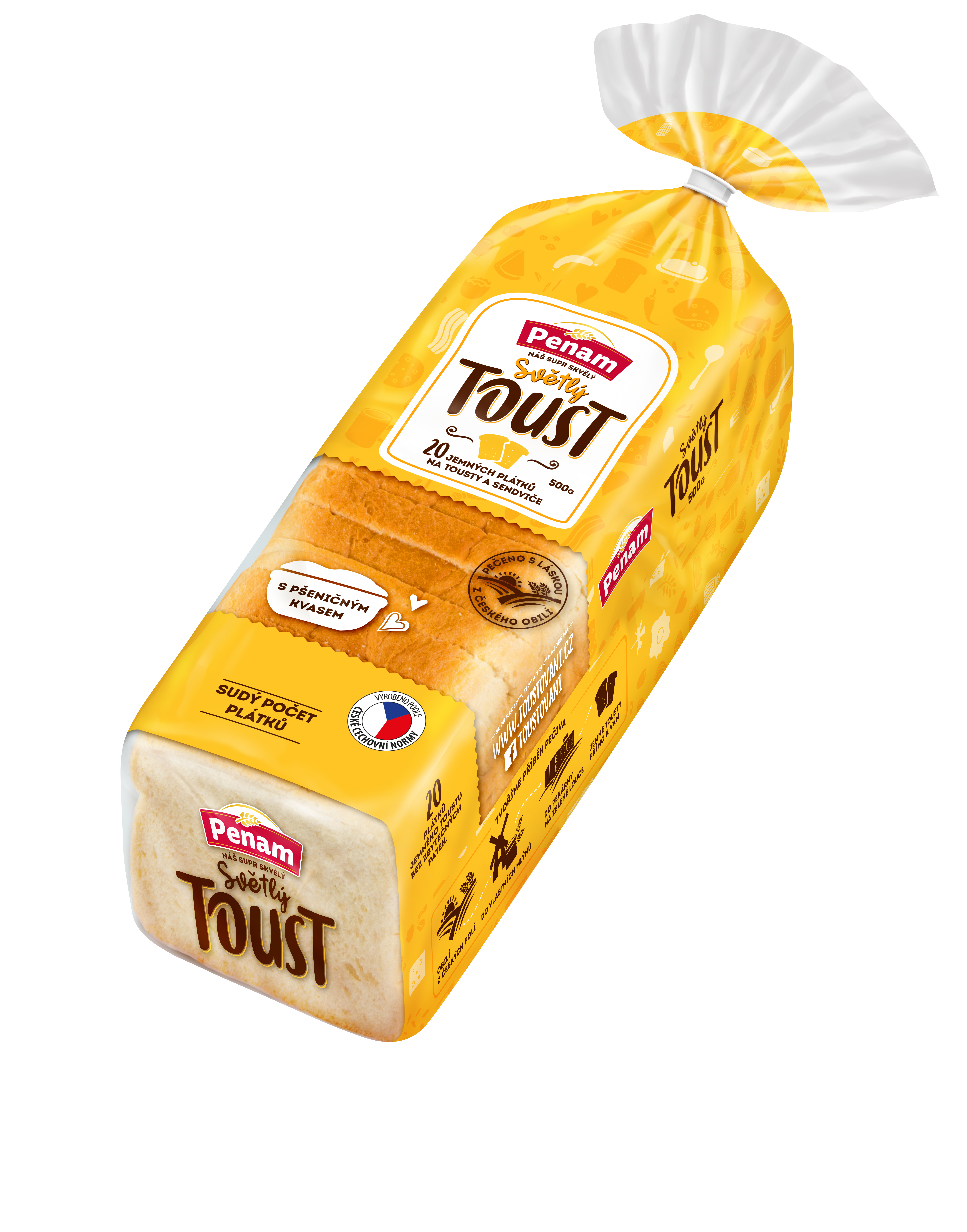Žádné patky, jen 20 nadýchaných plátků připravených skočit rovnou do topinkovače. Každý jeden krásně voní díky pšeničnému kvasu, který pro něj vymysleli naši pekařští kouzelníci. Toust světlý navíc neobsahuje žádnou zbytečnou chemii, a tak si ho můžete užít s čistým svědomím – na sladko i na slano.